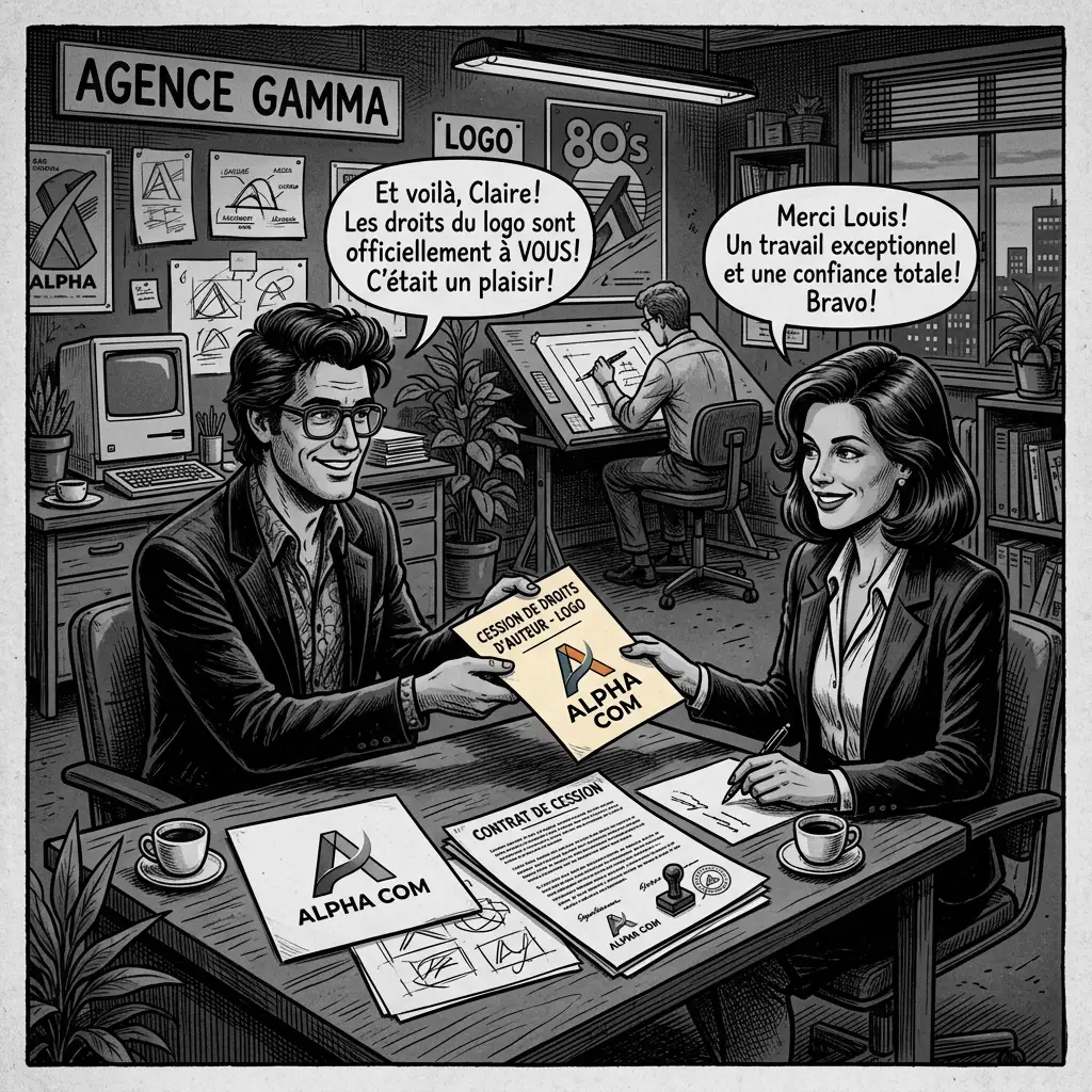 Sans cession de droits, vous êtes dans une zone d’incertitude. Vous utilisez peut-être le logo depuis des années sans problème. Mais juridiquement, vous le faites sans autorisation formelle. Et un jour — en cas de conflit, de mésentente, de changement de situation — le graphiste pourrait légalement vous interdire de continuer à l’utiliser.